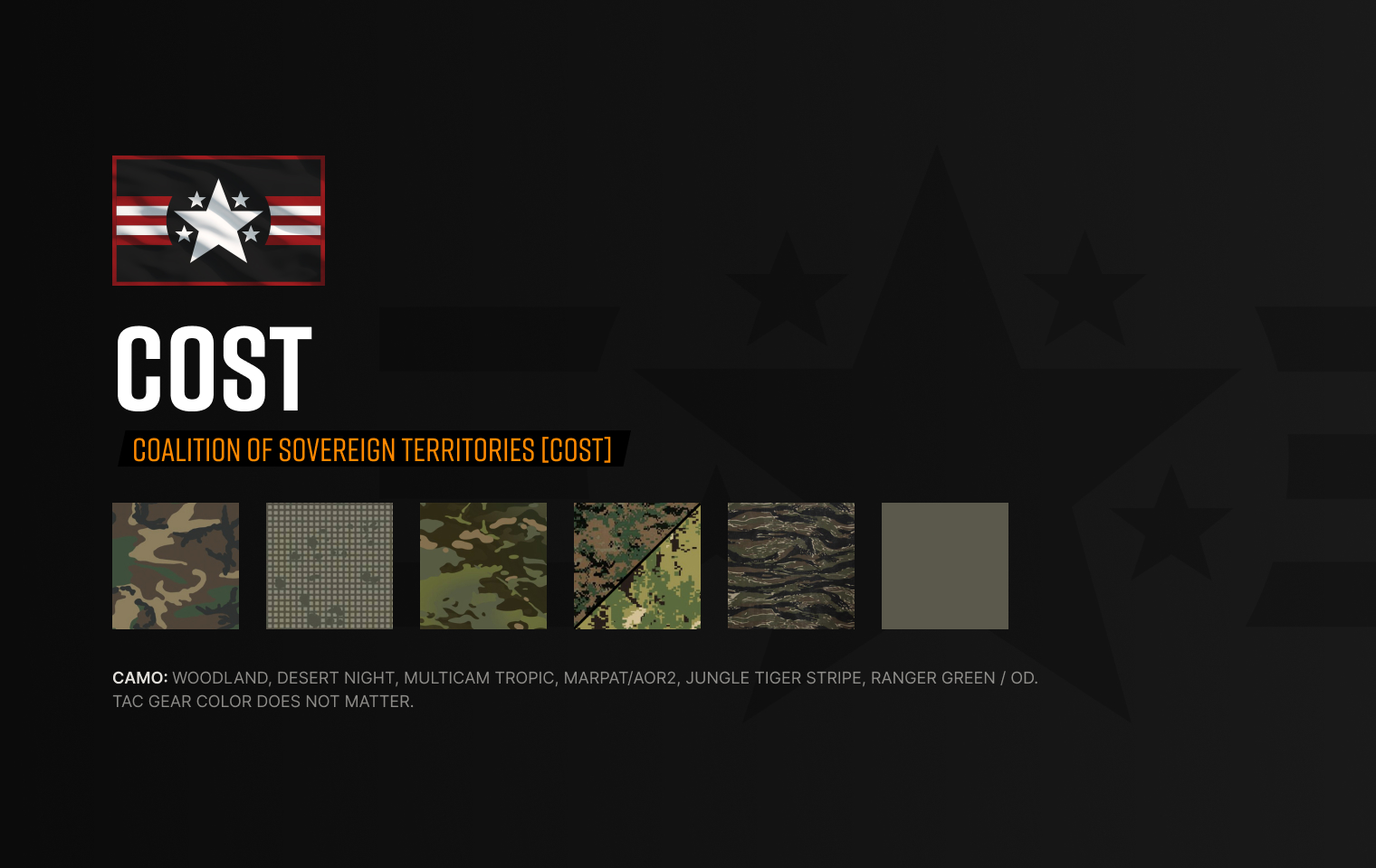 ONLY The following CoST Uniform(s) will be allowed - Players not adhering to the uniform restrictions will be removed from the AO until their uniform is CORRECT.
