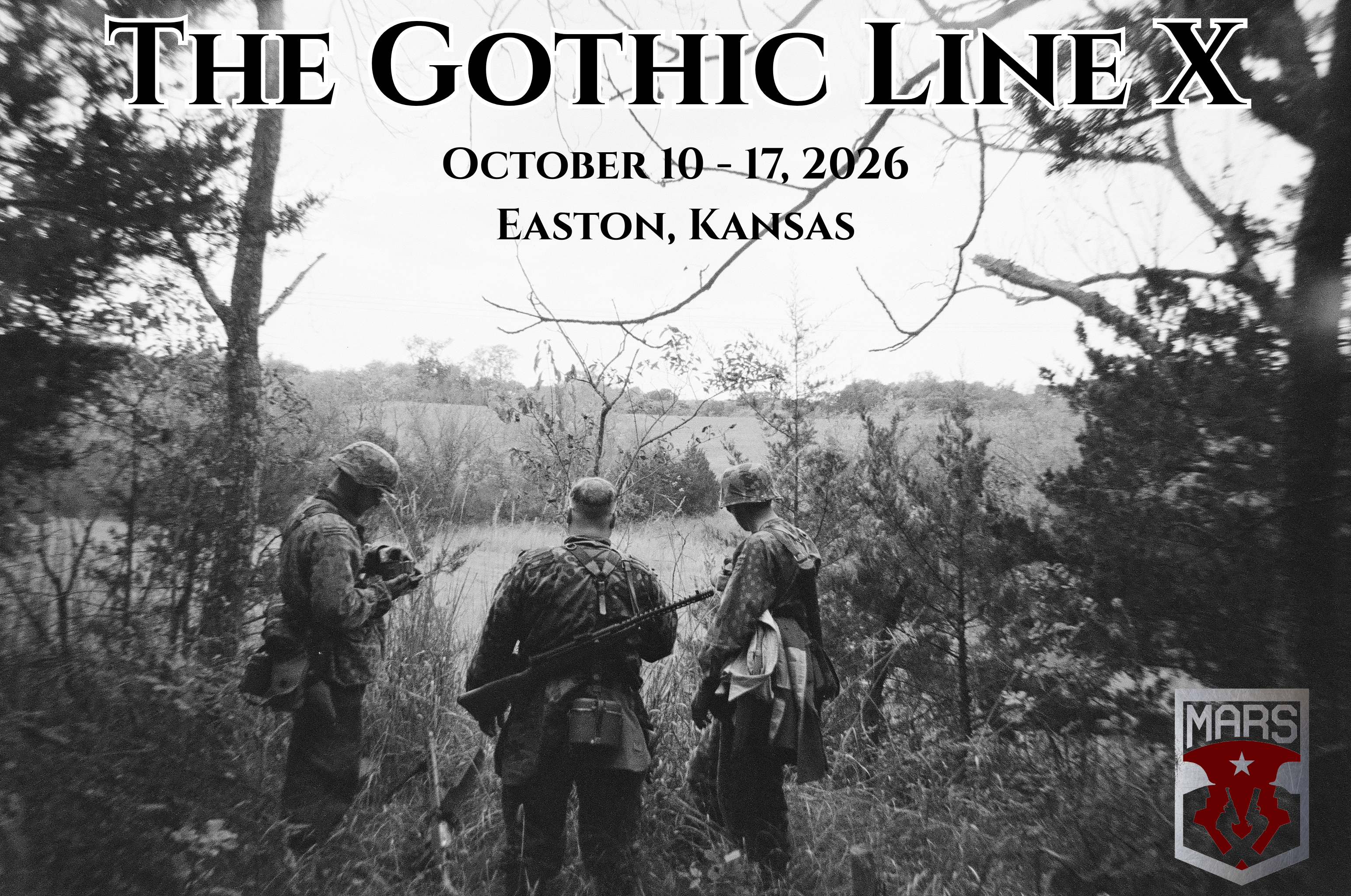 The Gothic Line X is a WWII Full Immersion, Historical event from Saturday, October 10 to Saturday, October 17 hosted by MARS. The event is nonstop from the moment it begins. There are high authenticity regulations in place, as well as specific units that are portrayed at the event. More information can be found on the website about these impressions and their authenticity guidelines.