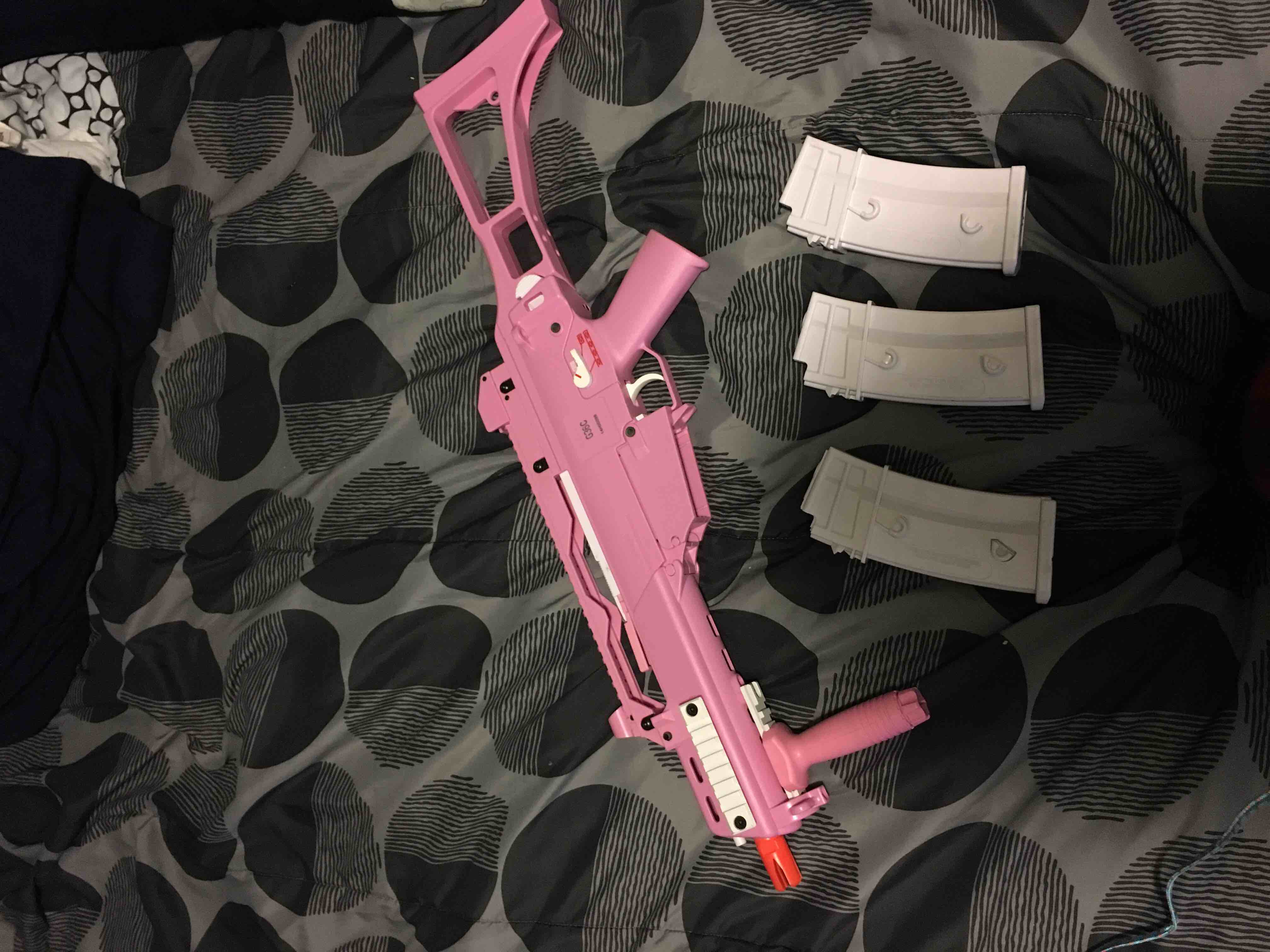 Limit edition pink G36C made by elite force. Coles with 3 mags. 1 is broken. Also has matching pink vertical grip. Folding stock. AEG. Some wear to select fire switch and rails. HK trade marks. US shipping only PAYPAL only No trades