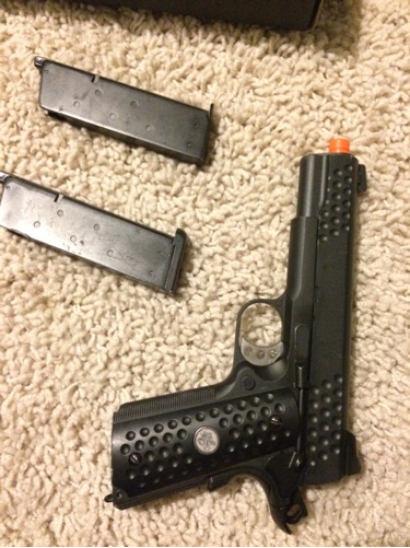 I'm selling a WE Limited Edition Nighthawk Airsoft 1911 Pistol it's only been used twice and is a really reliable gun I have to get rid of it since I bought a CQB Krytac I will also throw in a second magazine