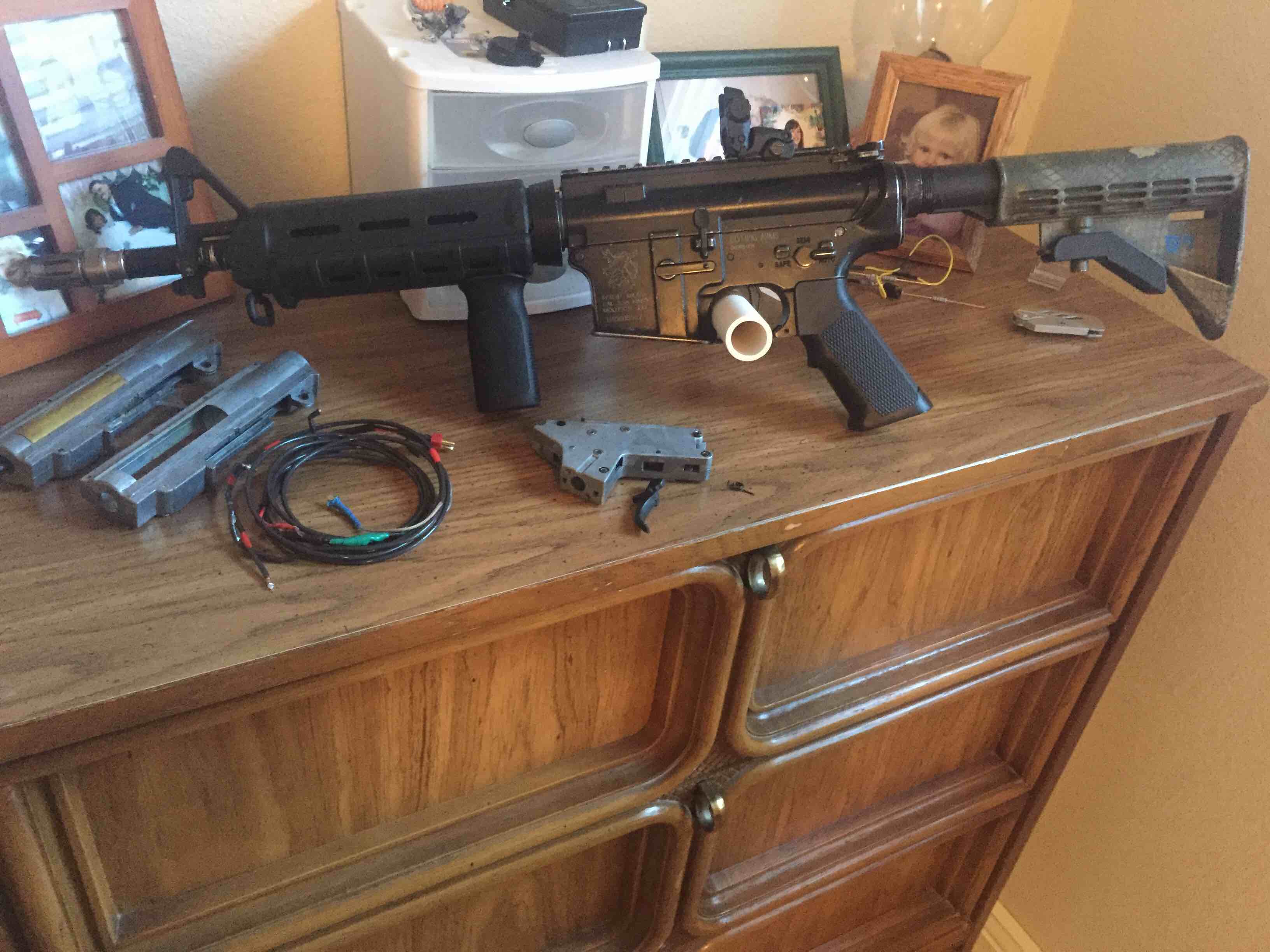 Things weren’t selling as quick as id like so I updated my package and lowered the price. ICS m4 split gearbox design. Has two functional upper and an upper shell. Two lower gearbox. One functional and the other is a spring and the little black piece in front of the trigger needs replaced if you want the safety to wrk. I have some wire thrown in as well as a trigger and trigger unit thrown in on the second gearbox. Gun could be re shimmed as I don't have any. And the motor height could be played with a little bit. Has Olympic arms receivers and legit moe handguard and stock silver barrel if I recall right. Wired to deans and has a deans plug on the wires included for the second gearbox can include deans to timiya adapter if needed. ~ 215 OBO
