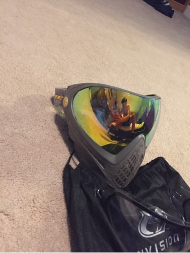Barely worn dye i4 mask comes with a clean and like new clear lens and a scratched but still very nice northern lights lens that I purchased scratched up
