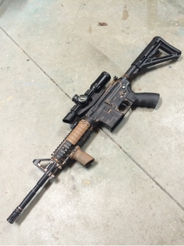 Buyer pays shipping! VFC m27 painted to look dusty for that operator look. Comes with grip and rail covers. Can add the scope for an extra $40 totaling $250. This is a different upper receiver than stock and it looks really nice.
