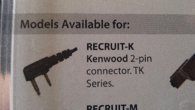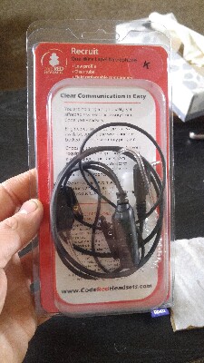 This is a Brand New Code Red Headsets Recruit in ear headset. It has the 2-pin Kenwood connector that works on most 2 pin style radios including the Baofeng UV5R radio. It has a lapel clip microphone on the wire.