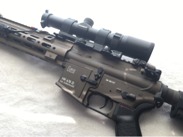 The gun has been cerakoted burnt bronze to replicate the 416 a5 color.