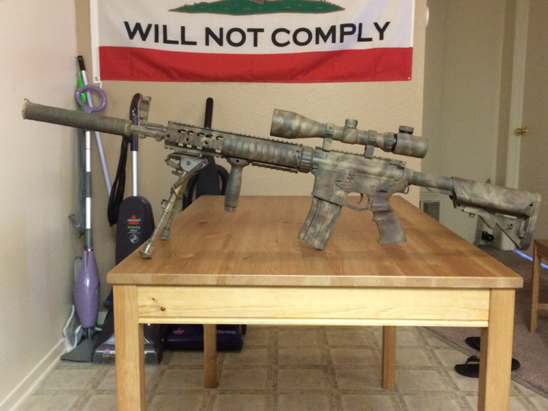 Painted with krylon camoflauge paint, this has no internals or inner barrel as it used to house a polarstar jack. Still have the mk12 flash hider I can include as well. $150 for this one.