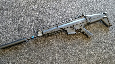 Very good condition VFC Scar-L with 6.03 steel inner barrel and metal mock suppressor. No battery or charger included.