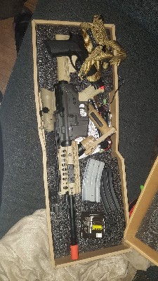 Recently shimmed and teched. Runs great. Only selling to get a smaller cqb gun for where I play mostly. Comes with a mag, battery, basic wall charger and acog scope. Let me know.