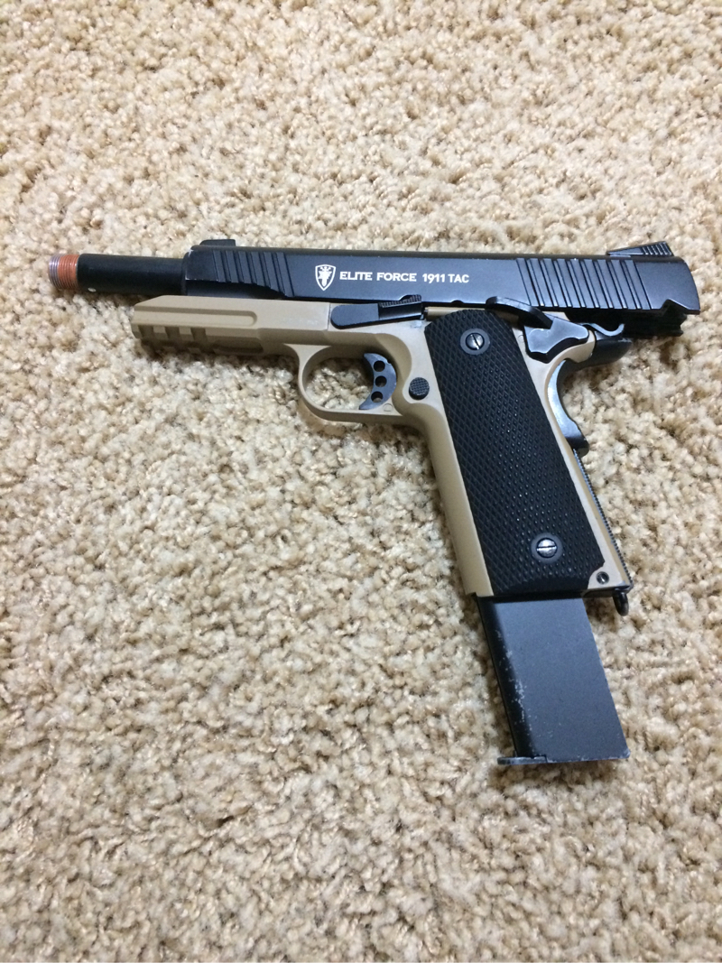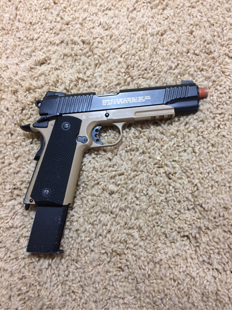 This is my elite force tactical 1911 SHIPPED. It comes with two mags. One normal mag is perfect. The other is leaky and the leaky extended mag and can be included for an extra $10. There are some minor scratches but that doesn't affect anything. I am not looking to trade. Cash is king. Priced to sell.