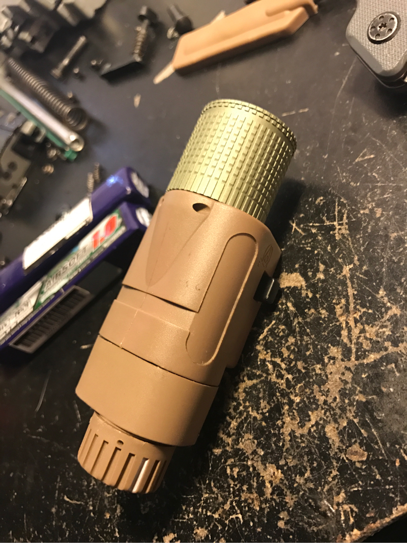Here I have an m3x flashlight. The light functions as you can see in the picture. I do not have a pressure switch for it but they are very cheap to purchase. Looking for 35 plus shipping. Message me for more info. Only trades would be for an eotech 553 or for a short dot.