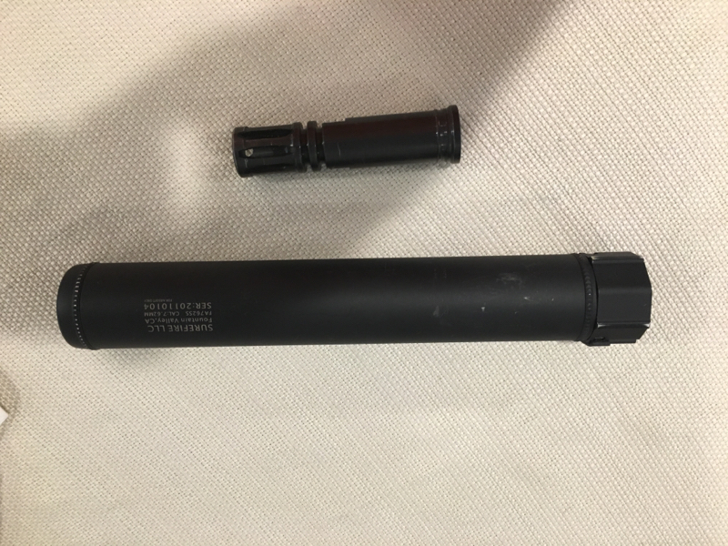 Selling a Surefire 7.62 suppressor. Includes flash hider to attach to outer barrel (CCW thread). Has some scratches and bb marks but nothing glaring. Does not have foam filling, hence the US Version.