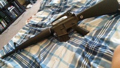 started as a jg m16a1, was given marui gears. works beautifully. comes with nam style mag and a 9.6