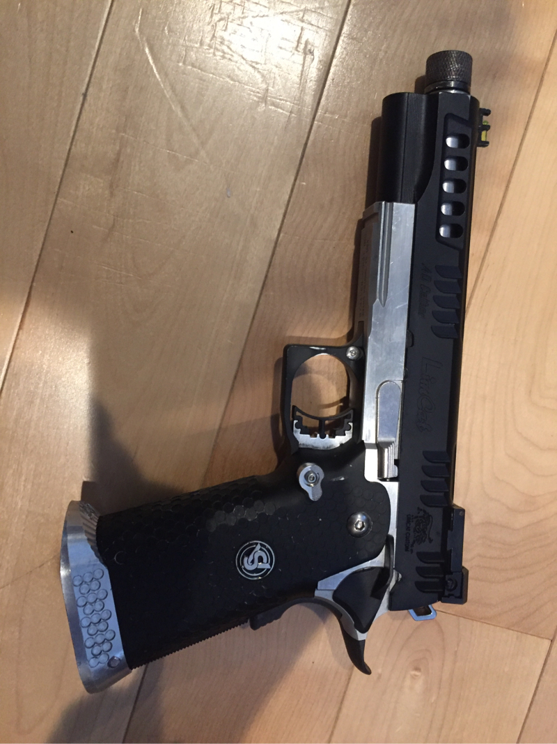 Super custom Hi Capa built by @derekwg1 on insta. It is a very clean build with crisp recoil and a nice trigger pull. The exterior is made of the best parts available and expensive parts.