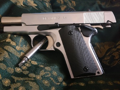 Selling this brand spanking new Matrix Detonics .45, it has never been fielded at all and no scratches on the body, reaches to 280-320 fps. This is a gas blowback pistol and it's full metal. Shipping and PayPal fees must be paid via the buyer. Comes with one mag and it's original box. Feel free to message me any questions. Buy now ships tomorrow with tracking Will trade for a tracer unit or a suppressor PRICE DROP TO 40
