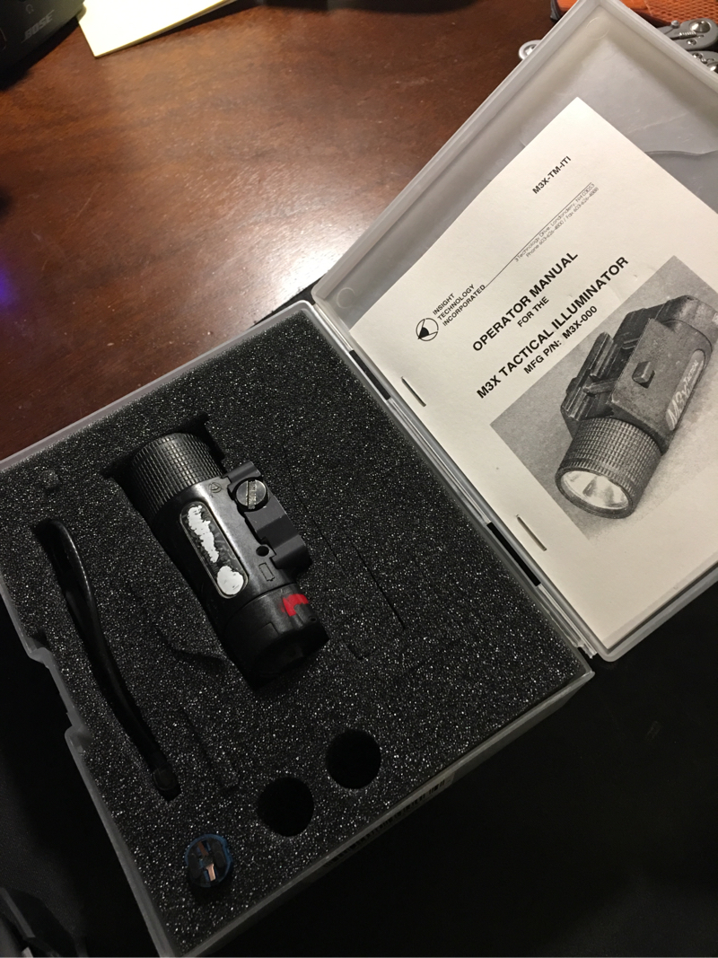 Well-used but fully functional M3X Tactical Illuminator from Insight Technology. Comes in its own case with information booklet, pressure switch, rubber gasket, and a spare bulb. No trades. Buyer pays shipping and PayPal fees.