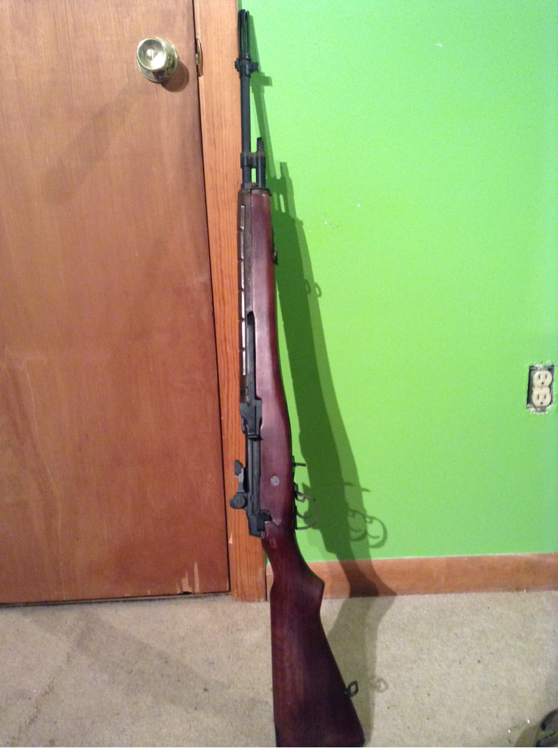Hey guys today I'm selling my g&g m14 veteran edition (yes that means the wood stock is real). Externally it has a few flaws such as a missing front sight, missing bolt catch, and a small crack in the stock that I put epoxy over. I restained the wood so now it look pretty damn nice. It will come with one mid cap magazine.