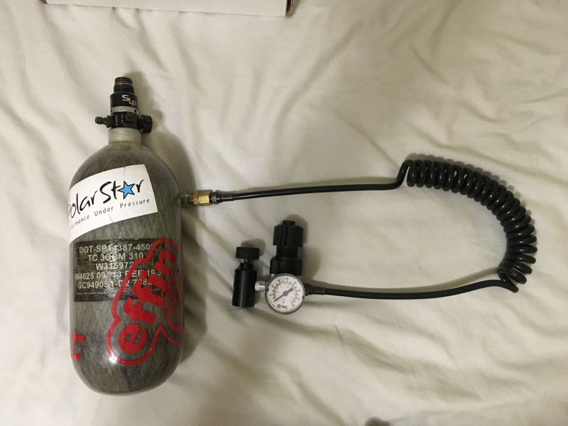 Ninja 90ci 4500psi fiber glass slp tank and a Airsoftjunkiez regulator with coil line. Asking $160 +shipping (shipping depends on your location)