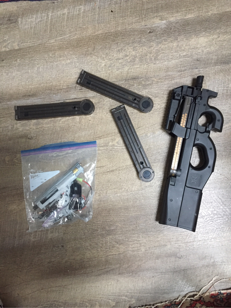 Unused CYMA/Cybergun P90. I tried to switch the spring out for a m100 but it was a bit too difficult for me and my local tech can’t work on P90s. Included is the P90 body, gearbox with all the parts included, an M100 spring (320-380 FPS), and 4 100 rd mid capacity mags. PayPal only, and I’m willing to bargain the price.