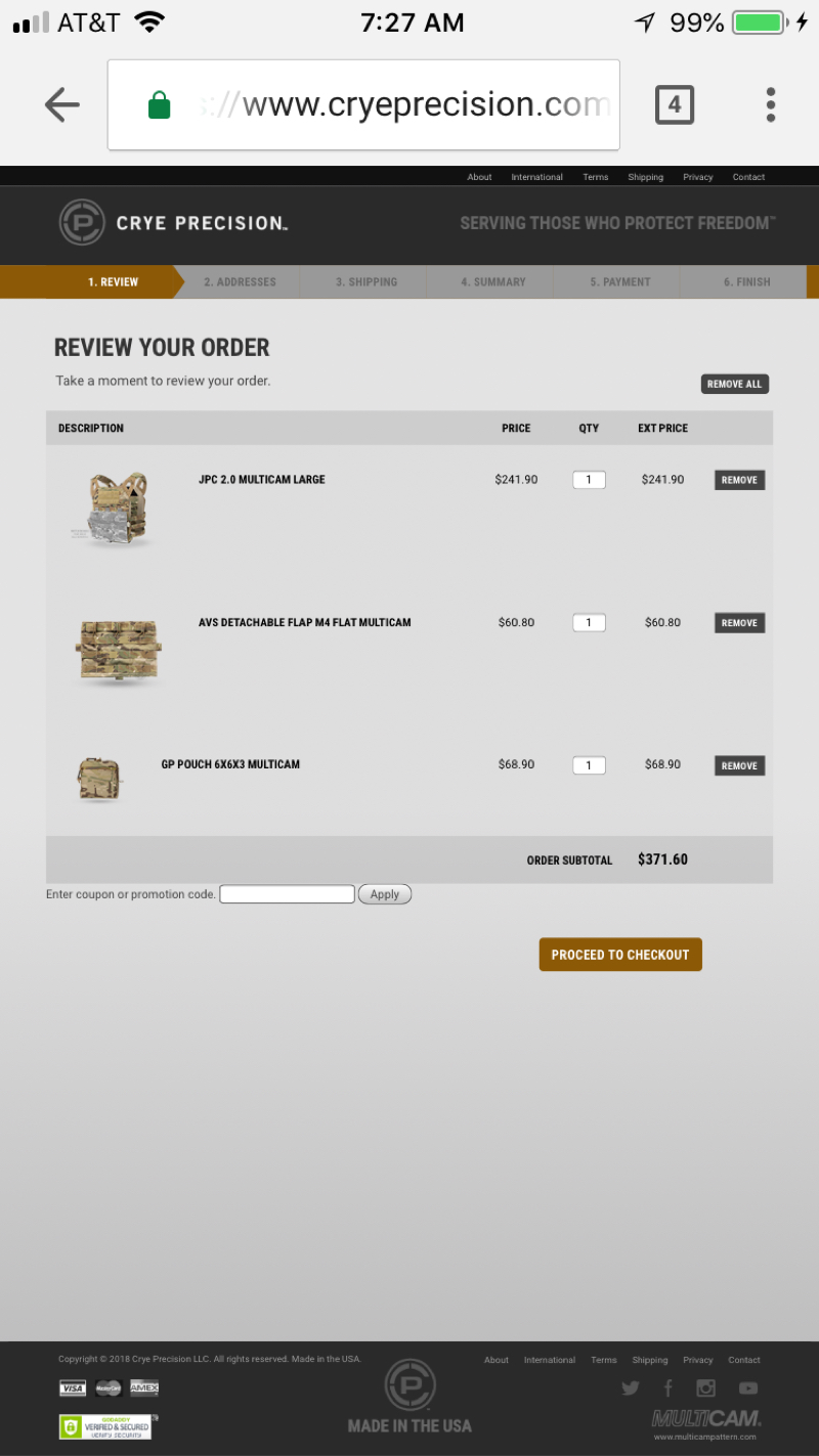 Price is shipped Everything is relatively new. Pics of all tags upon request Comes with: Crye Jpc 2.0 Crye Gen 1 zip on (about 130$) Crye M4 flat flap Crye 6x6x3 M4 kydex insert (about 40$)