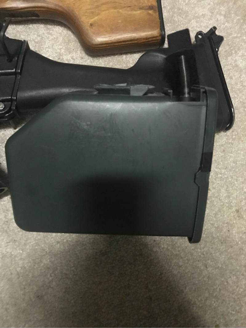 It does shoot, and the problem is that sometimes it runs away.. meaning it will shoot when you aren’t even pulling the trigger. It’s random from what I’ve found and I don’t know what causes it, maybe something with the contacts. Box mag included and the box mag works perfect. Gun could use a new inner barrel and hop up unit, but it does come with one. I would personally not field this gun in its current state. The runaway trigger is dangerous, and as previously stated, this needs a new Hop up and inner barrel. The gun does not shoot straight at all. This is best off in the hands of a tech or somebody who is willing to spend the money to fix it.