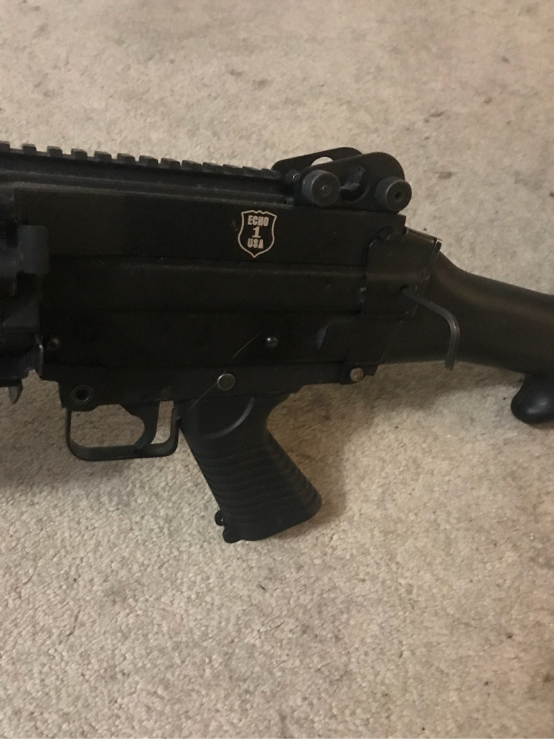 Echo 1 SAW. Needs work, stock is missing bolt so it won’t hold onto place. Any bolt will hold it however, you just have to get one.