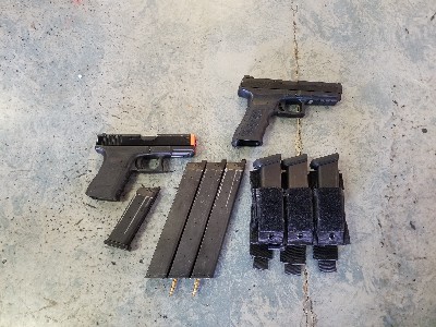 Price includes both pistols and all mags shown. G19 slide is worn and no longer cycles well. ATP is a laser.
