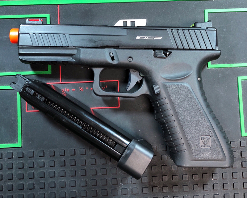 Like new APS APC “glock” type replica Comes with like new CO2 mag In original box with flaired mag well Buyer pays fees and shipping