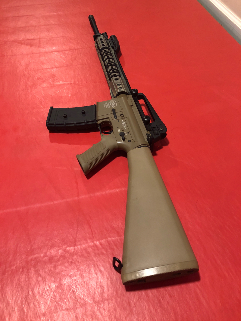 Make me an offer. Just finished this build and decided it wasn’t for me. Gun is stock In the gearbox. New keymod rail system and paracord wrap and a flip sight gas block. Has a angel customs 6.01 inner barrel prommy bucking and flat nub. Will add inforce light as well for right price. Shoots great fps is close to 390 ish. Perfect for a dmr platform. Flash mag included but short dot will cost more. Looking primarily for cash. Trade offers must be good primarily looking for an hpa engine to drop in another gun.