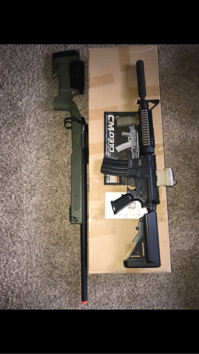 INCLUDES SHIPPING, PURCHASE MADE WITH ZELLE PLEASE ONLY, The KWA SR7 is fully functional and it comes with all attachments you see in the picture, with some extra mags, The ASG m40a3 is brand new, comes with one mag, This price is ridiculously low for what you’re getting to be honest, any questions feel free to ask, thank you for reading!