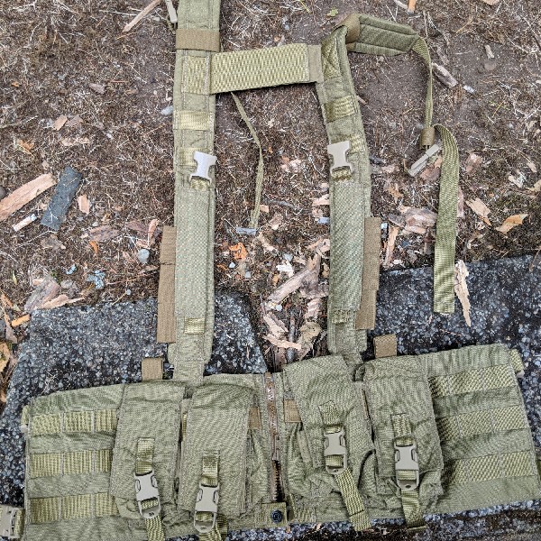 price is shipped. This is an unused eagle Industries multi purpose chest rig with molle. alot like the LBT 1961G but has molle on the sides for canteen, mbitr, or more mag pouches.