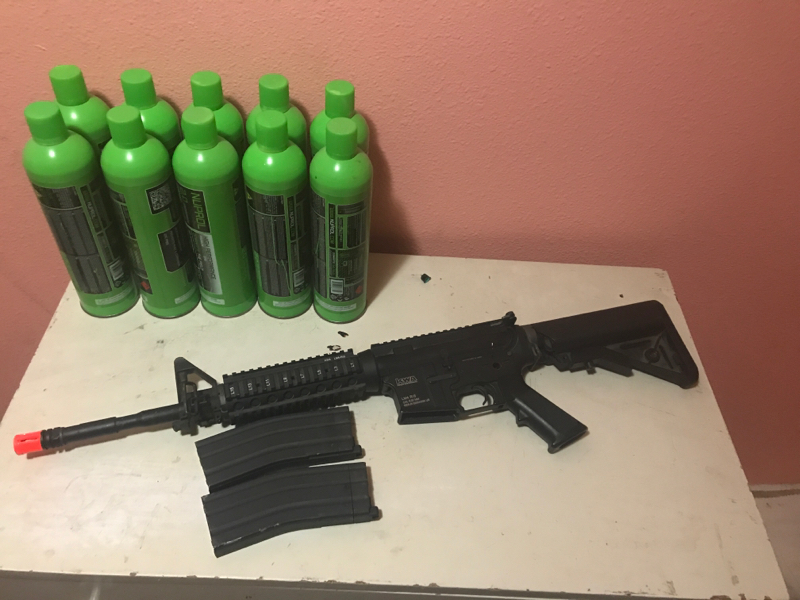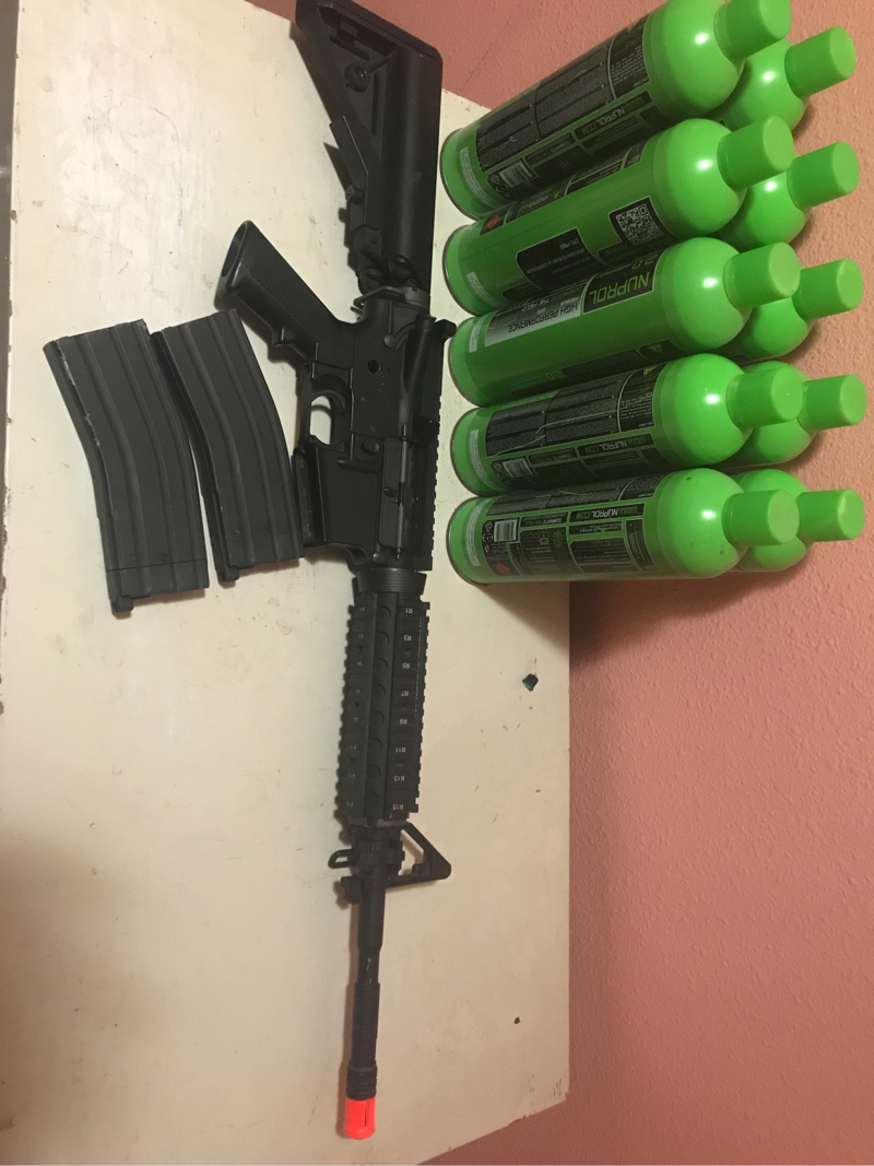 I’m selling it because I need to get rid of it and have nothing to do with it.. don’t play airsoft anymore gun plus mags plus green gas cost 500$.....need gone works great no leaks In mags and each green gas can is full... dm for more info