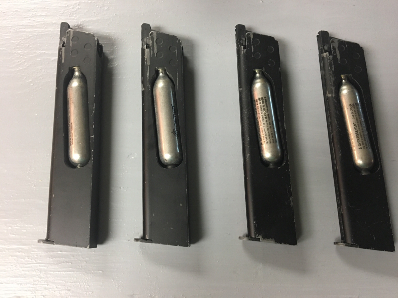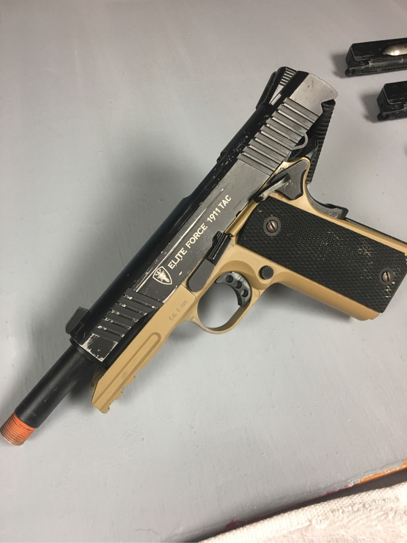 I Have a worn 1911 tac by elite force with 4 extended magazines for it(I will sell mags/gun separately). The gun still works fantastically, and I have owned it for almost a year. It has a scratched and worn look from the holsters I’ve used. I am selling it because I ran a shield for some time and have switched to an aeg, so now I am going to buy a hi capa to replace it. I will pay for shipping. DISCLAIMER, the co2 in the mags will be removed before shipping.