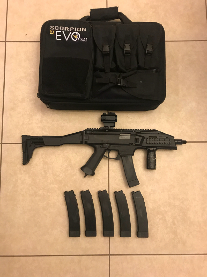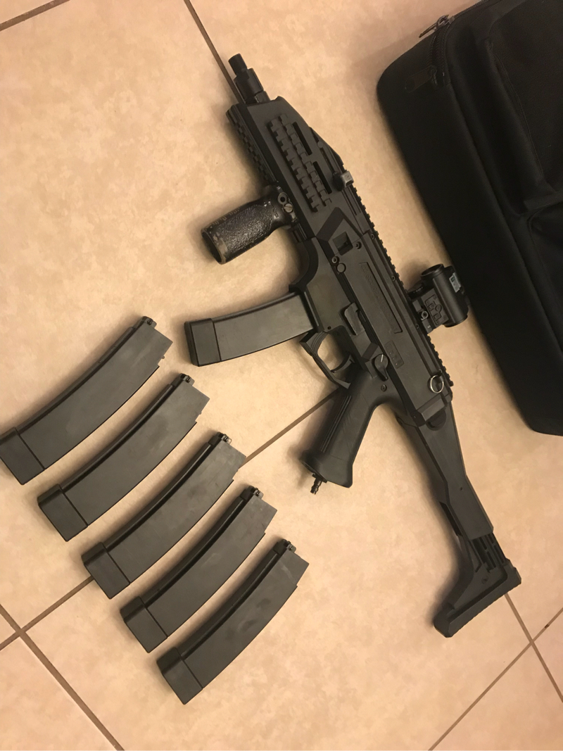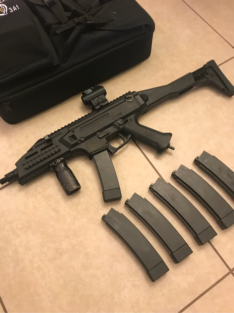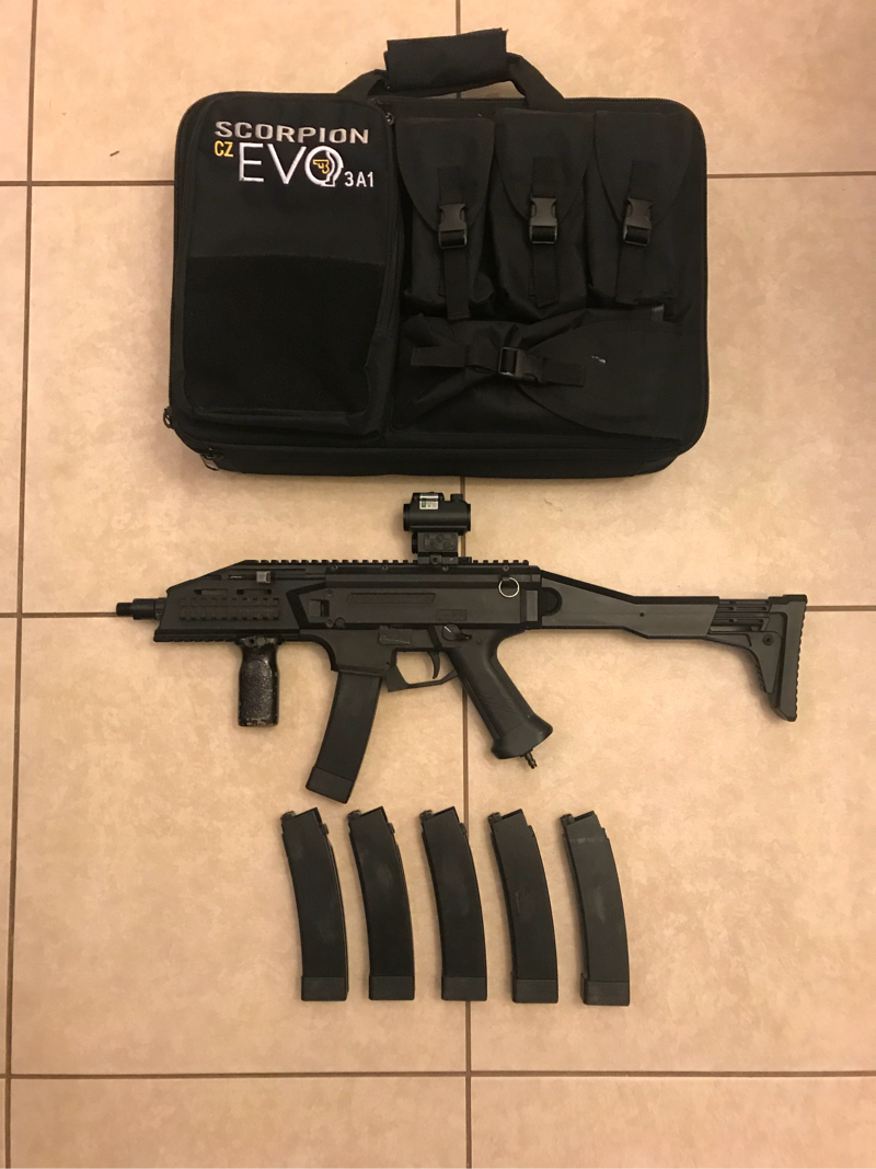 I’ve got another HPA Scorpion Evo by ASG for sale with attachments, case, and more. This rifle is factory equipped with the Wolverine Inferno Gen 2 HPA Engine, features three fire modes (semi, burst, and full auto), and also has a last round cutoff feature meaning when the last round is fired the gun stops shooting until another mag is inserted. So no dry firing!! Fully adjustable RPS and FPS. Comes with the rifle, thread adaptor for 14mm-, 6 midcap magazines, Magpul RVG (painted), T1 red dot with laser and QD Mount, and softcase. Everything works great, and this is priced to move! If you have any questions feel free to ask. No trades, thanks. Thank you for looking and have a great day.