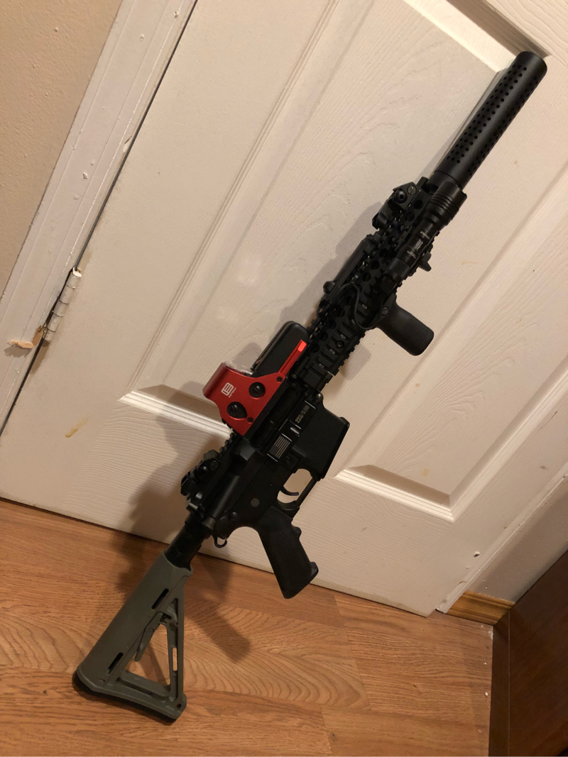 Only used for 1 game so far. Shoots straight and true. Mosfet gives it a snappy response. Shoots about 290-320 for indoor use. Stock spring shoots around 370-420. Comes with everything in picture. For more details please message me.