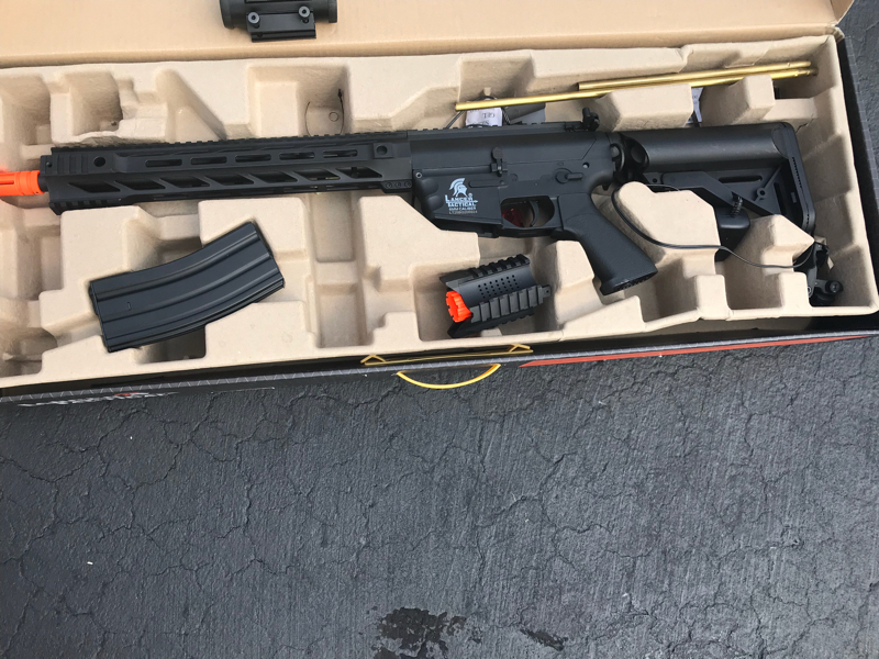 Brand new lancer tactical m4 with red dot. Buyer pays shipping I’ll pay PP fees