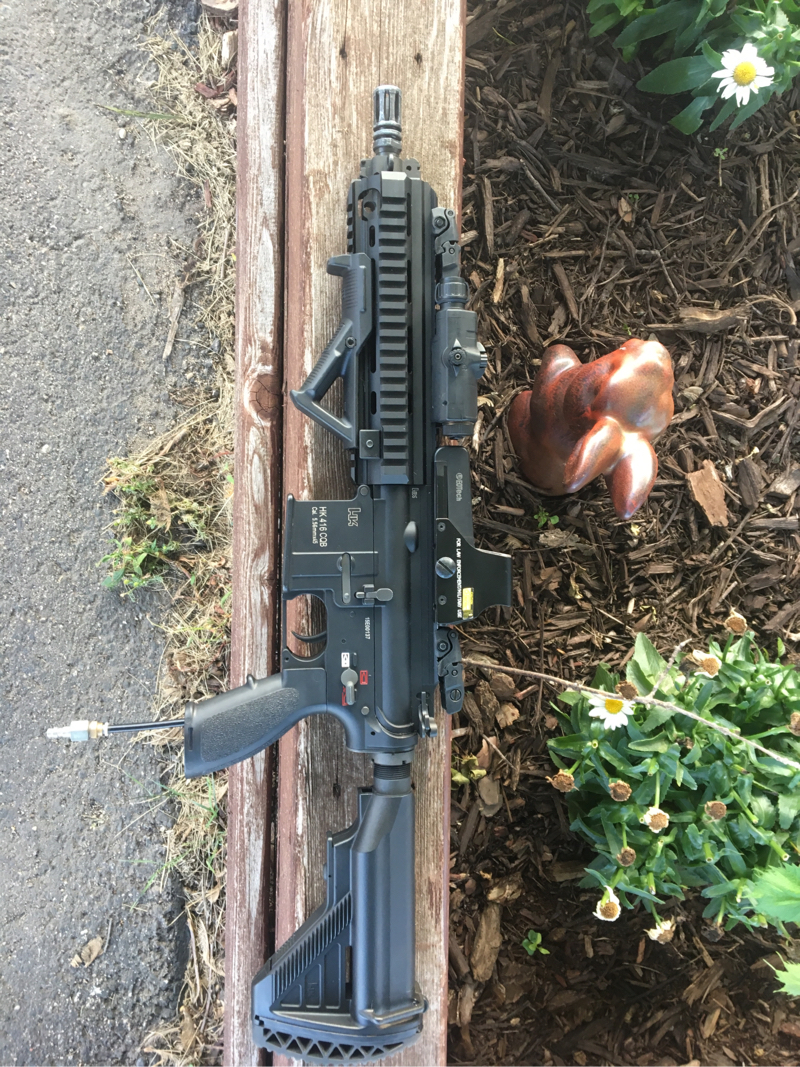Testing the waters on my P* 416. Love this gun, just looking for something different. Has a real gemtech inert silencer and magpul mbus. Has a nice moch eotech and an fma peq.