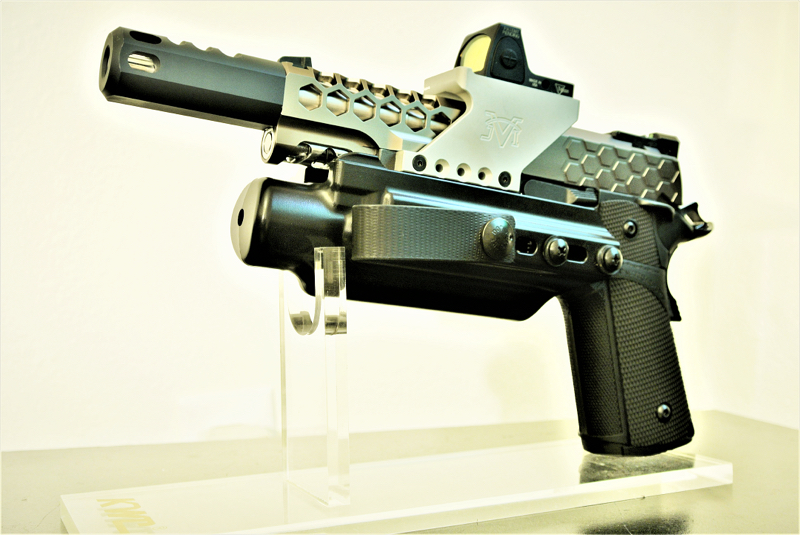 Complete that IPSC look with a lightweight, low profile and compact Trijicon RMR replica optic with real steel JV Industries mount for 2011 model. Diclaimer: Requires drilling and tapping chassis. Shelf queen for display purposes only.
