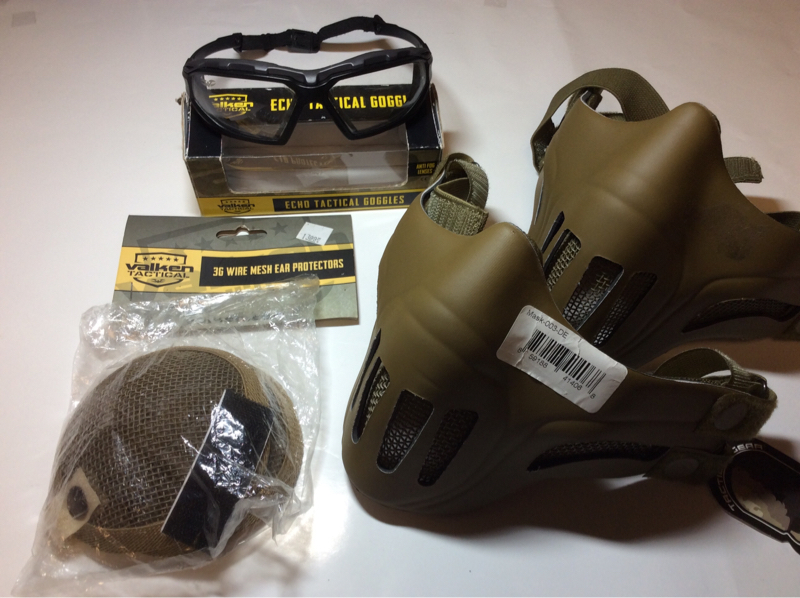Bundle includes two face masks in new condition, new mesh ear pro, and Valken Echo goggles (some minor wear on lense). Shipping is $10