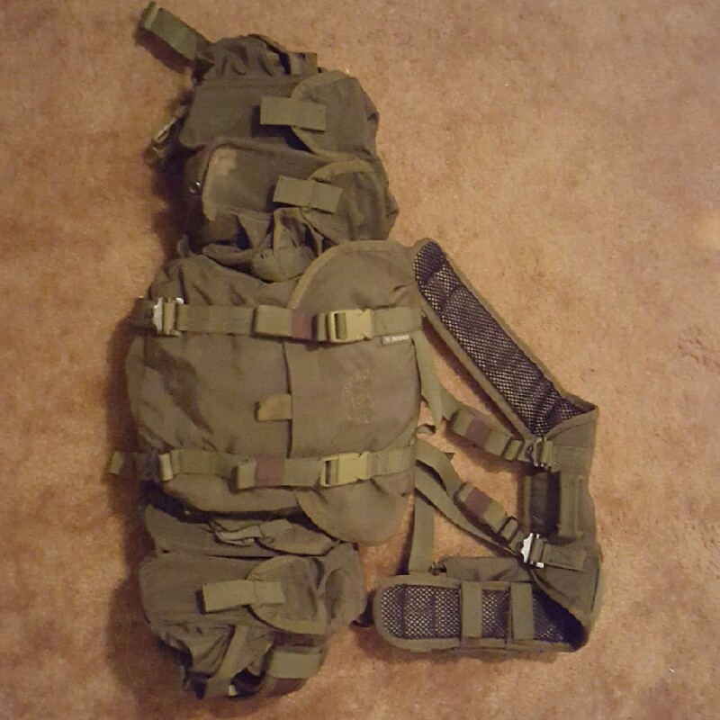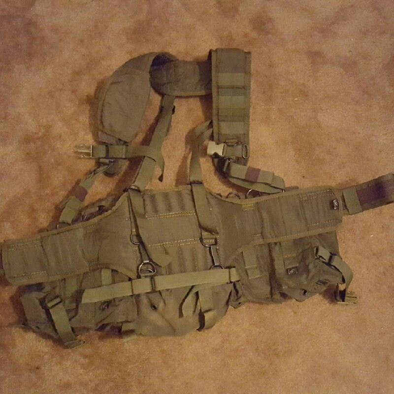 Used once, no signs of wear except for a small mud spot. Includes AK and SVD pouches. (AK pouches can hold most intermediate rifle magazines and the SVD pouches can fit most battle rifle magazines). Cost $120 new plus $37 shipping (not including the SVD pouches!). Made by Russian Military contractor, SSO/SPOSN. Olive drab/Ranger Green kind of color.