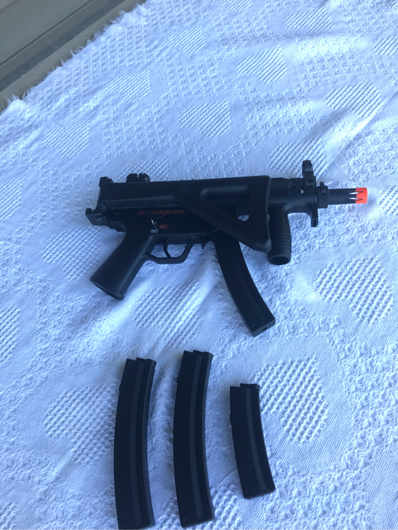 I have for sale a Tokyo Marui Mp5K PDW. The gun shoots straight as an arrow and comes with 3, 100 round magazines and a low cap. I can also include a stick battery that will fit into the gun. Honestly, this is steal at this price, considering all the mags you get also. If you have any questions, feel free to let me know. Price is pretty firm. Thanks!