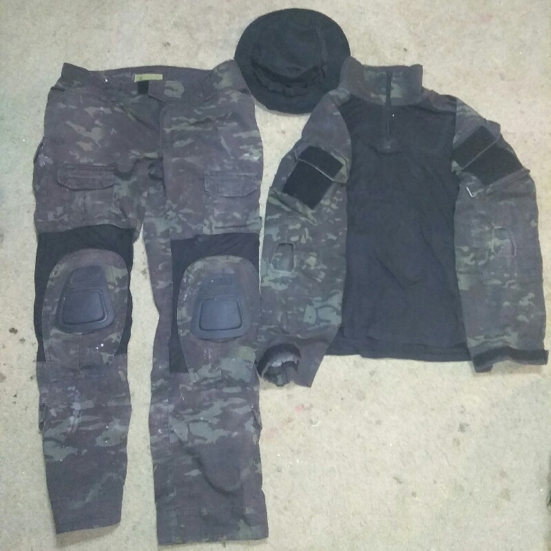 Selling a set of Emerson medium Multicam black as I don't need them anymore. Shirt is a Medium Pants are a 30-36 adjustable waist Black Boonie included $65 shipped