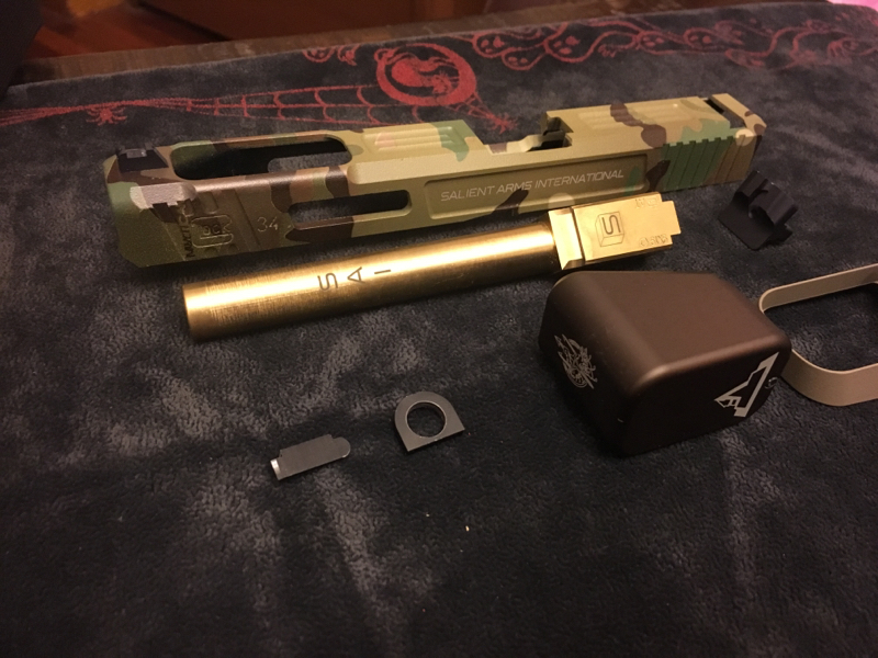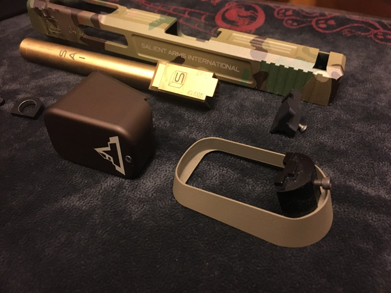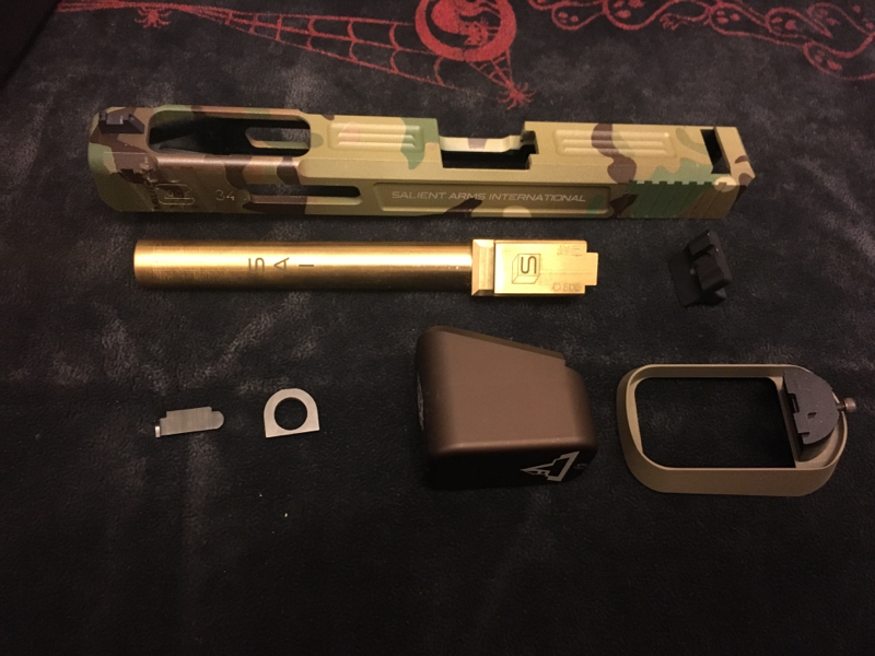 For sale is my discontinued airsoft surgeon aluminum SAI g34 mutlicam slide set for tokyo marui g17 gas blowback pistol $289. It also comes with an additional aluminum mag base $38 and additional aluminum magwell $25. The total price for all of these things add up to be $352. Priced to sell! Get it before it is gone!!!