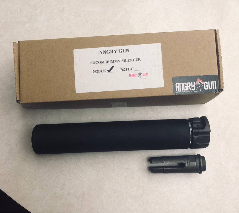 I have a brand new never used Angry gun Surefire SOCOM 7.62 mock suppressor for sale. Comes with mounting hardware, 4-Prong steel flashhider and black suppressor. Threads are negative -14 CCW. Silencer is not foam filled and is 8.5” in length. No trades. PayPal only. Shipping add $10.