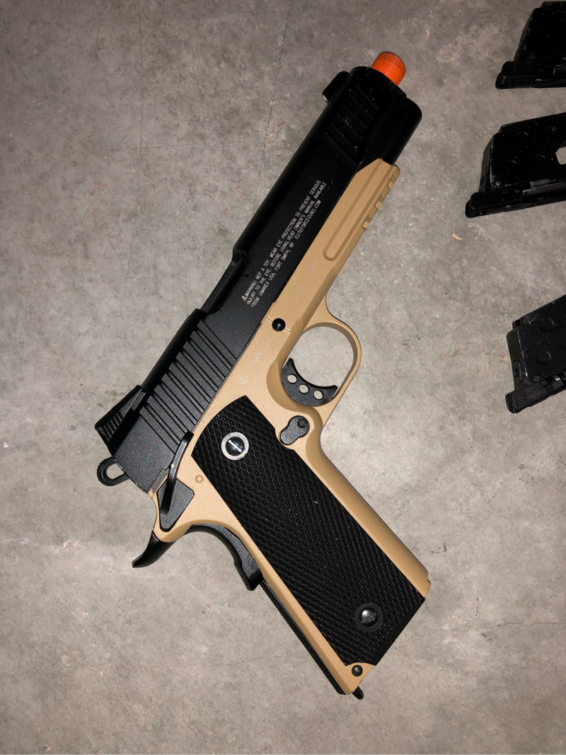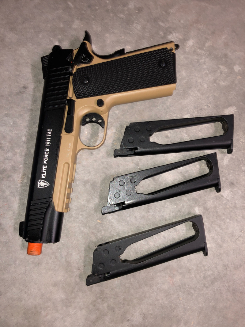 Elite force 1911 Tac CO2 powered gas blowback pistol. Includes 3 magazines. Prefer to sell locally, will deliver for list price. CASH ONLY