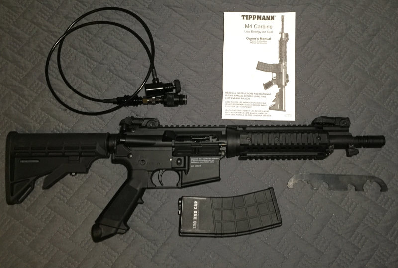 This rifle is literally brand new, never been fired, used, or fielded, you have my word. Tippmann CQB M4 (10.3 in version), includes manual, tool, magazine, and Tippmann QD line w/ slide check. This stuff will run you $450+ retail, so you could consider this as 20% off. Not looking to trad£. 💢Buyer pays shipping and PayPal fees💢.