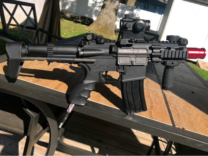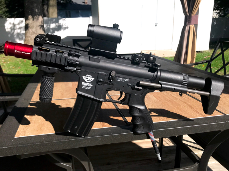 G&G Firehawk with a Valken V12, gold nozzle, QEV valve, Amped Airsoft IGL, Ares buttstock, foregrip, K Tech amplifier and a sight. It also comes with a G&G amplifier, longer inner barrel, longer outer barrel, and rail. $300 plus shipping and paypal fees. No magazines included with the sale.