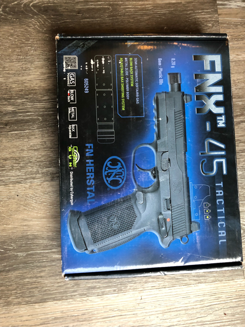 FN Herstal FNX-45 Tactical Airsoft Gas Blowback Pistol by Cybergun (Color: Black / Add Extra Magazine)