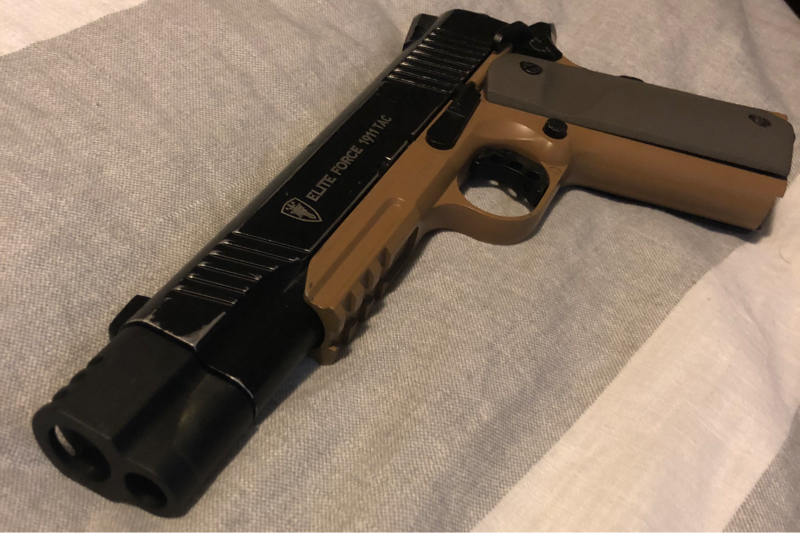 Elite Force 1911 Tac with Compensator and 2 mags. Also installed after market grip.