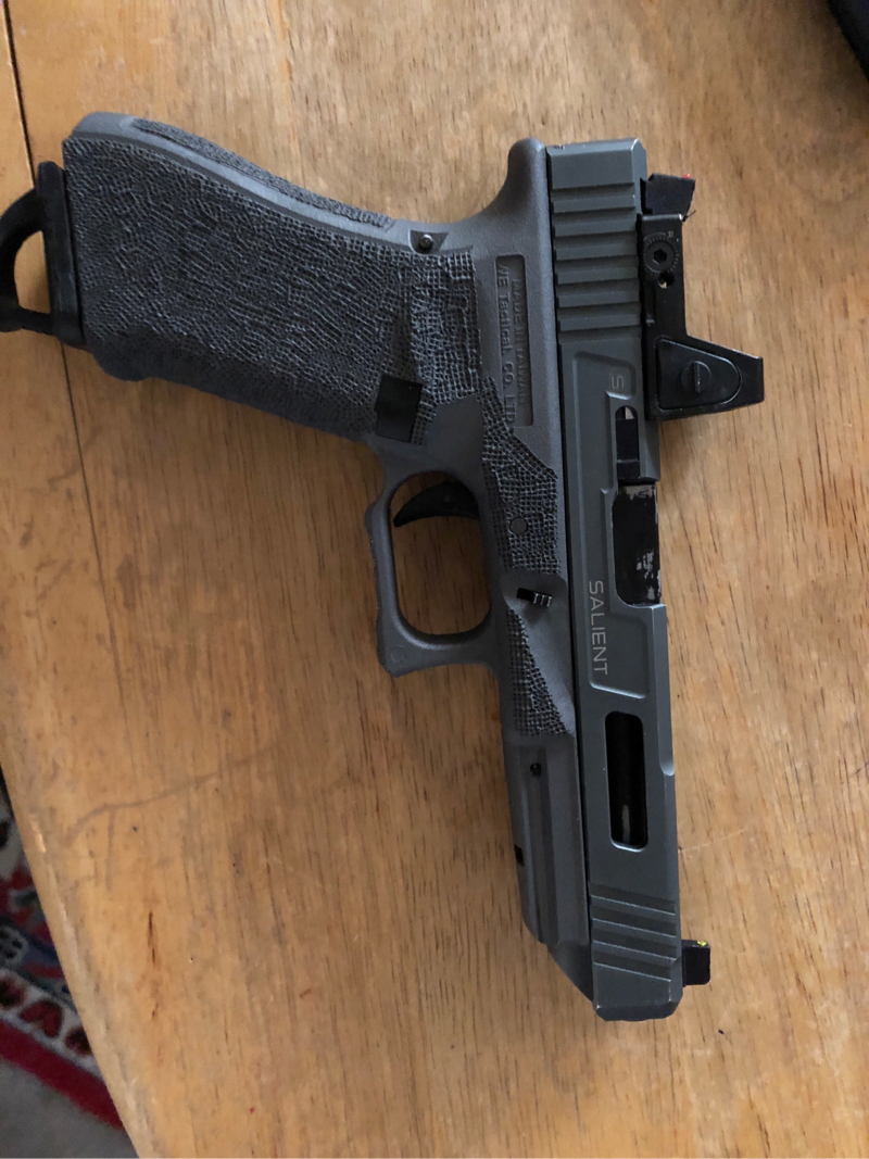 External: cerakote and stippled frame in tactical gray and sai g34 slide with rmr sight. Internal: maple leafed bucking & hopup wheel, guns modify zero bbu, guarded main seal. All other internals are from we and tm parts. Condition: working with minor wear damage on barrel and slide (all viewable in pictures) but no issue to functionality.
