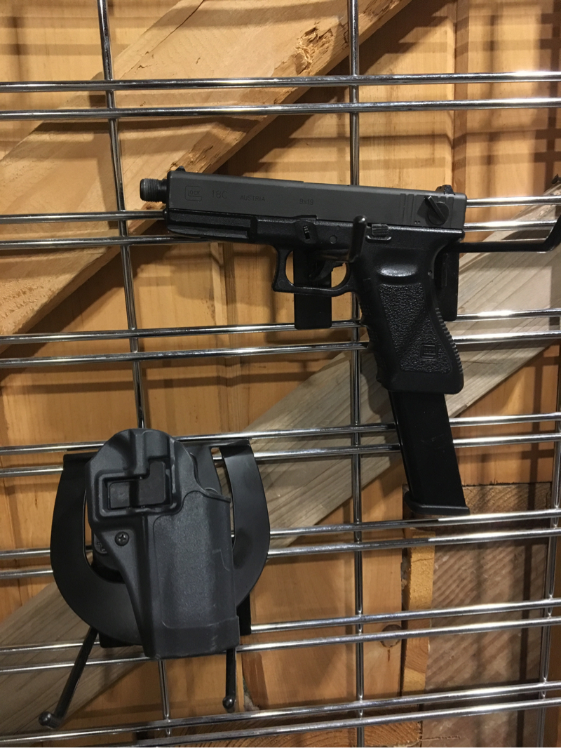 full metal slide Tokyo Marui g18 glock with extended mag and Blackhawk holster